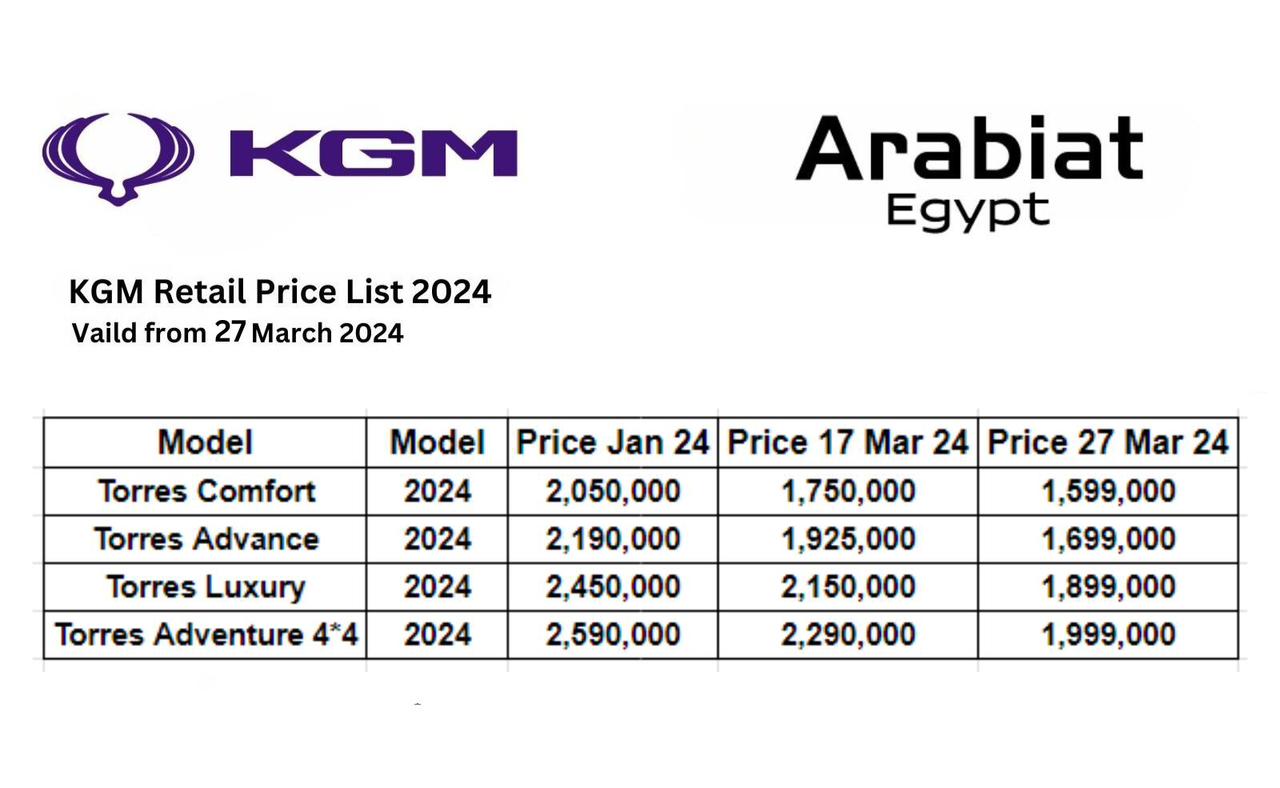 و كانت عربيات إيجيبت أول وكيل سيارات يعلن رسمياً عن تخفيض أسعار السيارات في مصر بعد تغيير العلامة التجارية سانج يونج الكورية إلى KGM.