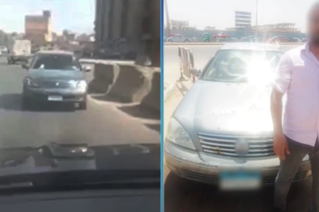 ضبط سائق سيارة للقيادة عكس الاتجاه