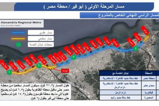 ويذكر أنه قد سبق إيقاف تشغيل القطارات فى المسافة بين محطة الإسكندرية ومحطة سيدى جابر كمرحلة أولى وبين محطة أبو قير ومحطة المنتزه كمرحلة ثانية ومع بدء تنفيذ المرحلة الثالثة للمشروع يكون قد تم إيقاف الخط بشكل كامل للبدء فى تنفيذ مشروع مترو الإسكندرية ( أبو قير / محطة مصر ) .