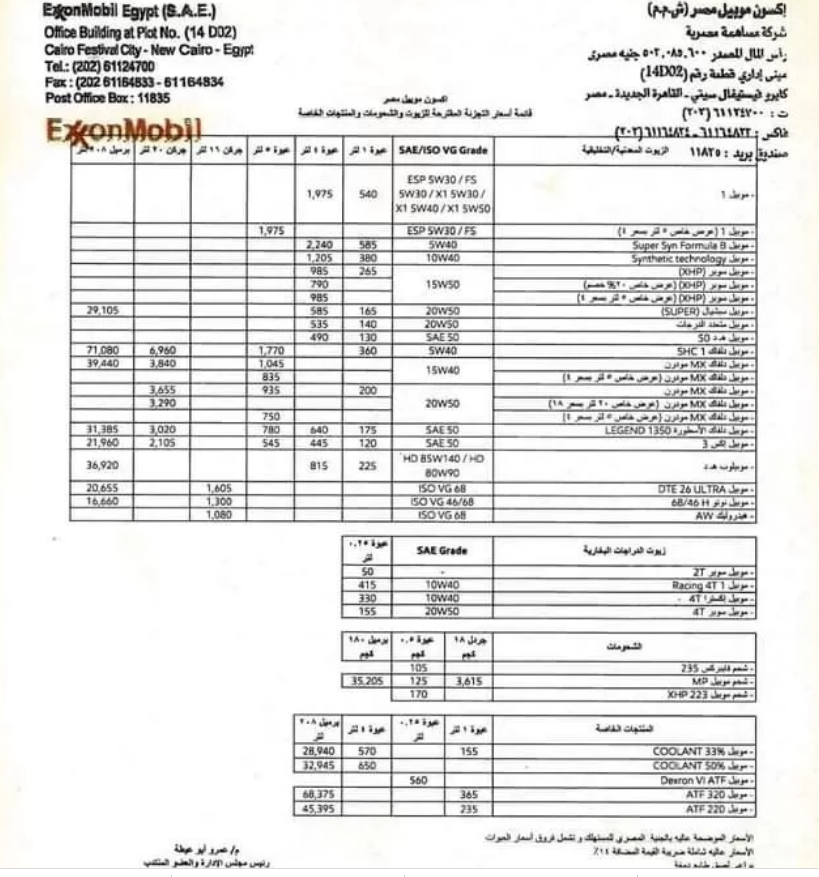 رغم التخفيضات في الأسعار في السيارات وقطع الغيار في مصر وانطلاق عروض للصيانة, ولكن شركة إكسون موبيل في مصر التي تقدم علامة زيوت موبيل في السوق المحلي أعلنت عن ارتفاع في أسعار زيوتها في مصر وذلك لثاني مرة في شهر مارس الجاري.