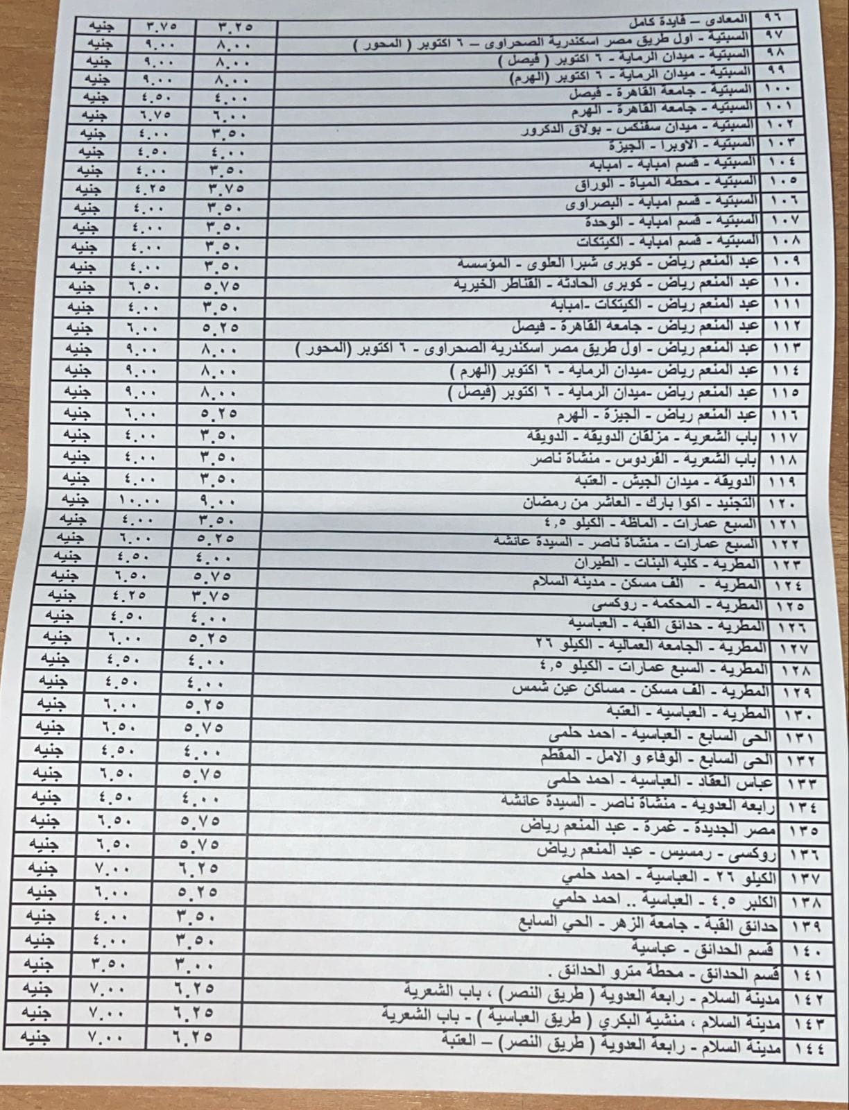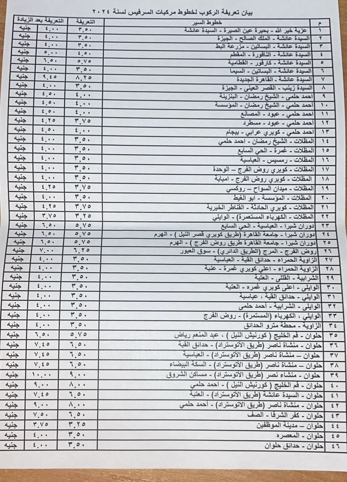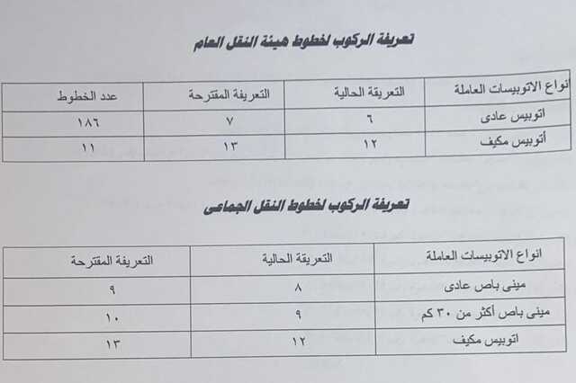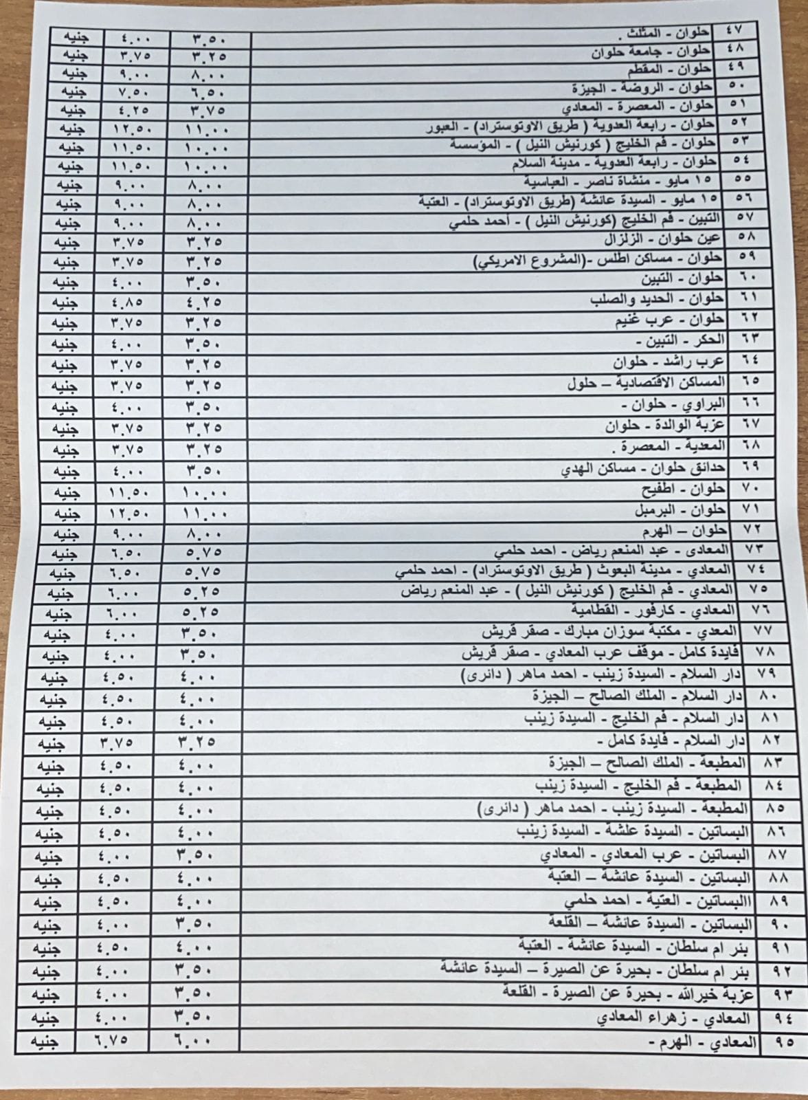 وضع أسعار المواصلات الجديدة على جميع المواقف