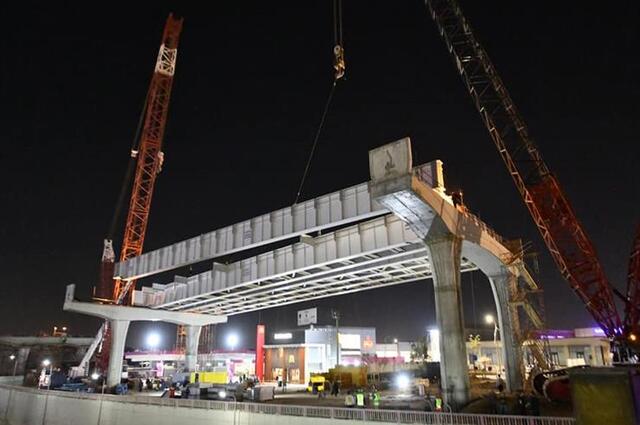 رفع 4 كمرات معدنية خاصة بكوبري صحاري الأهرام