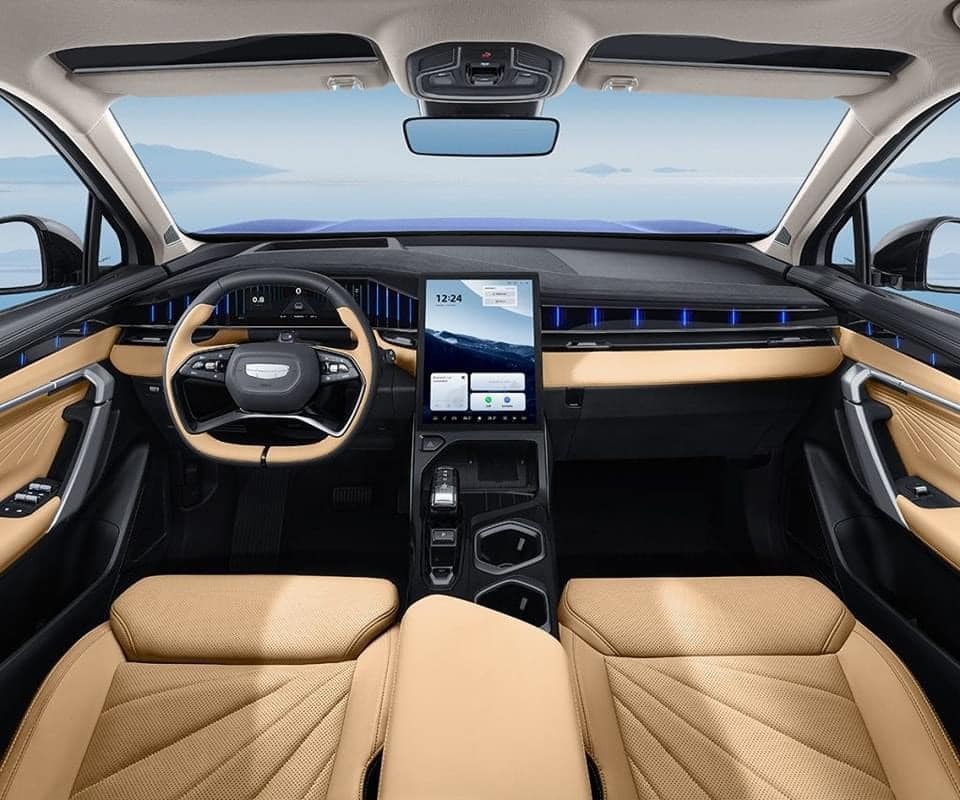 وتأتي السيارة بالمصابيح النهارية المضيئة بدقة وجمال مع خطوط جانبية مرتبطة بإضاء شريط الجناح الخلفي للسيارة. كما أن تصميم جيلي الجديد من الداخل بمقاعد يغطيها الجلد بالبني الفاتح مميز. وتأتي بشاشة قيادة ترفيهية مقاس 13.2 بوصة مع إضاءة محيطة متزامنة مع الموسيقى. وجاءت بناقل الحركة الألكتروني من الكرستال .