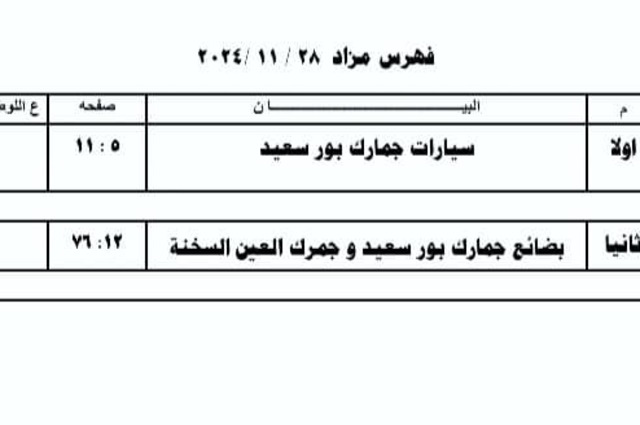 تعرفوا على أهم السيارات في مزاد جمرك بورسعيد في 28 نوفمبر