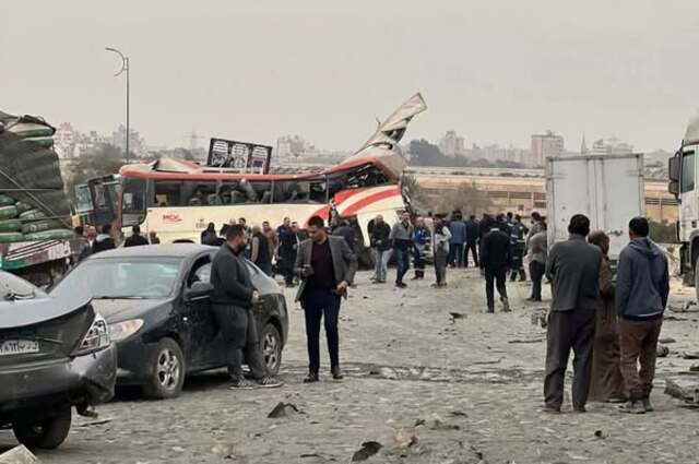 20 سيارة ملاكي و2 نقل وأتوبيس يتصادمون بحادث مميت بالقاهرة