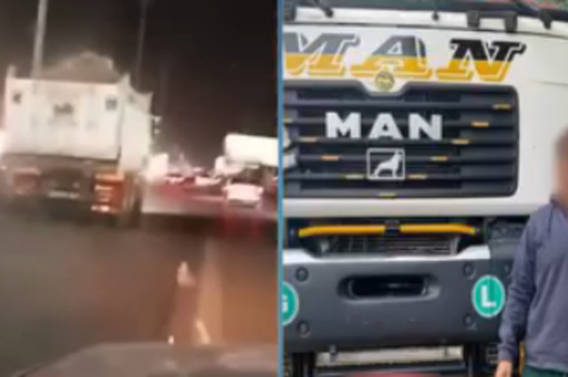 ضبط قائد سيارة نقل بسبب السير برعونة