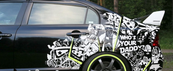 ويتضمن ذلك إضافة معلقات او وضع اية كتابة او رسم او ايه رموزاو ايه بيانات اخري غير تلك الواجبة بحكم القانون واللوائح علي جسم المركبة او اي جزء من اجزاءها او لوحاتها المعدنية .
